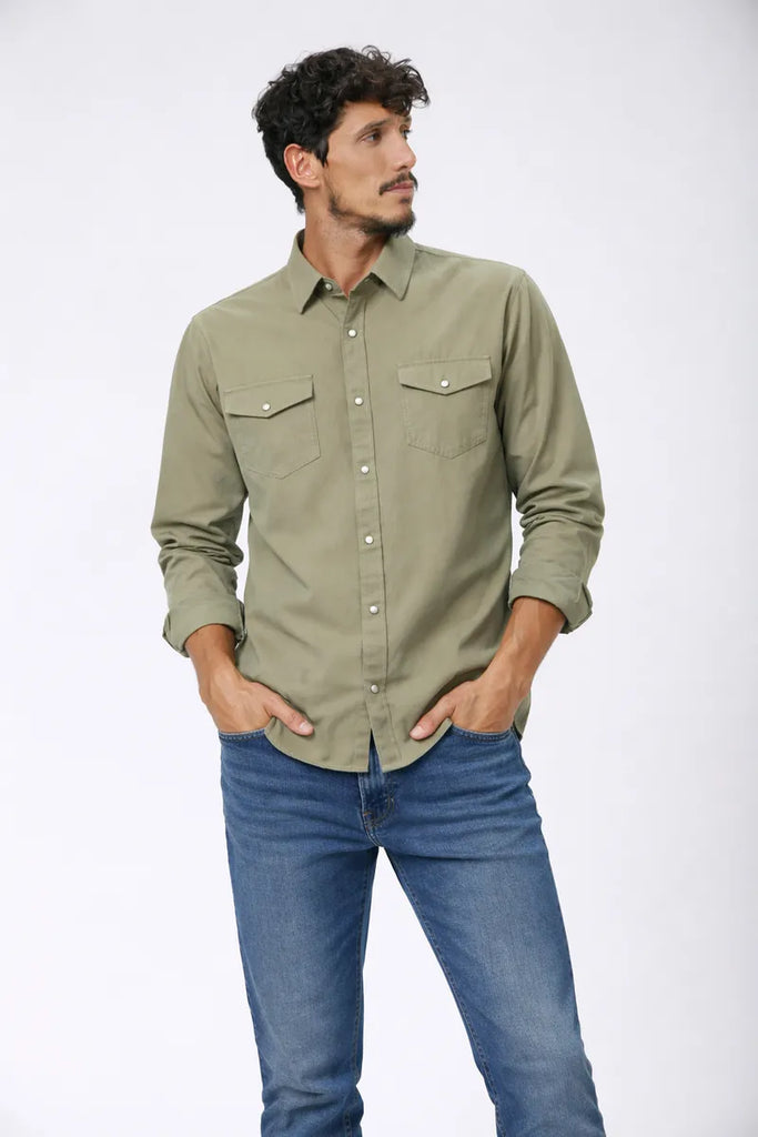Camisa UFO manga larga en tela gabardina algodon lavado de excelente calidad y confeccion.