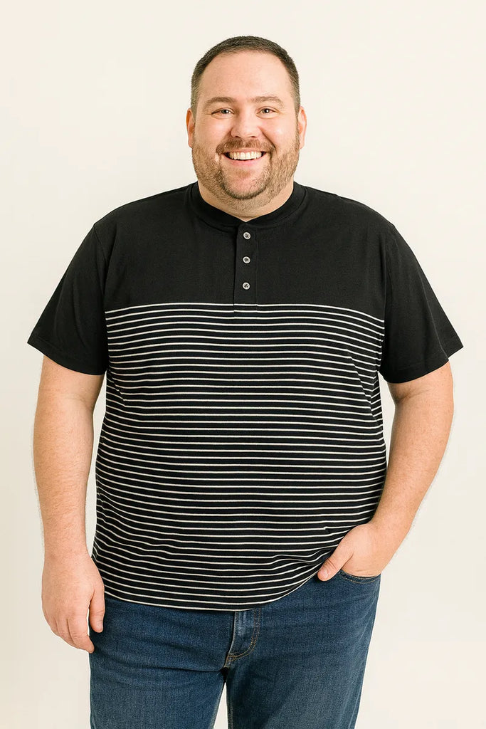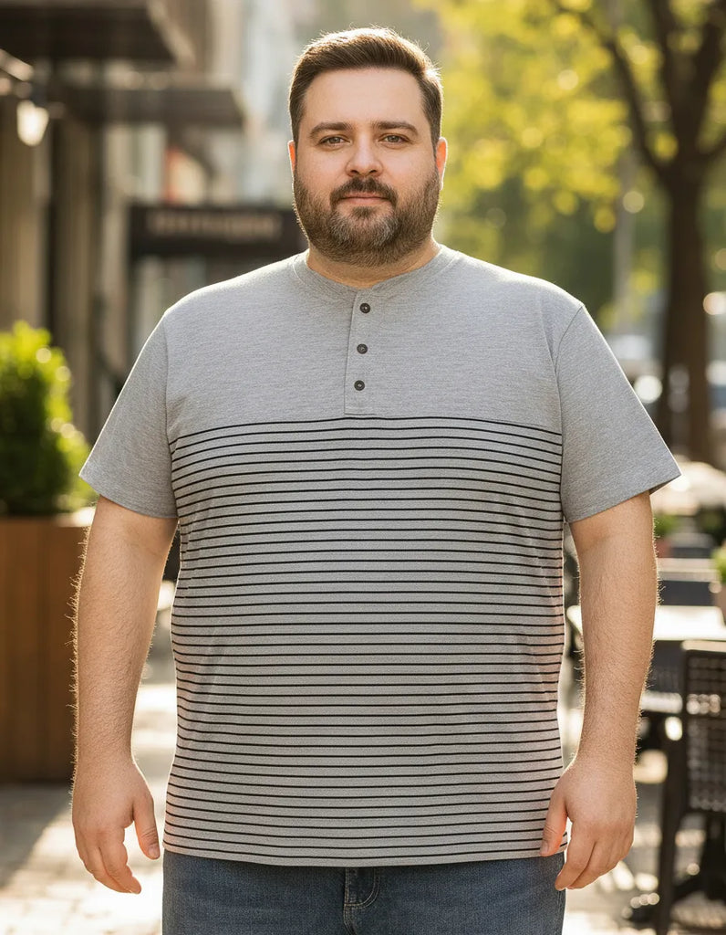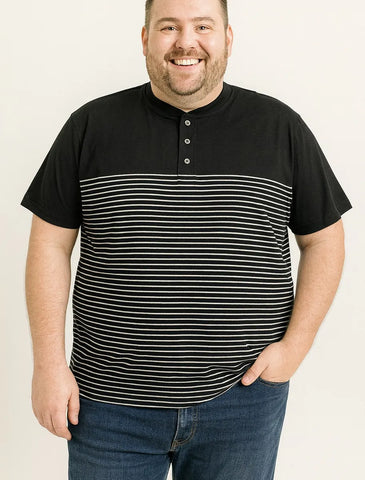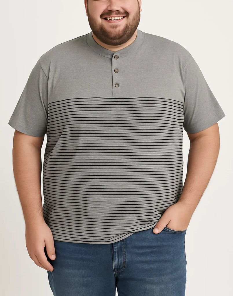 T-shirt manga corta Talle Especial cuello Mao mineroCombinada en algodón.INDUSTRIA NACIONAL