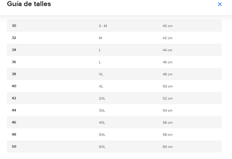 Numeracion americana. Talle 34 por ejemplo equivale al 44 local. El mas grande viene marcado como 48 y equivale al 58 o sea 116 cm contorno mide la prenda.